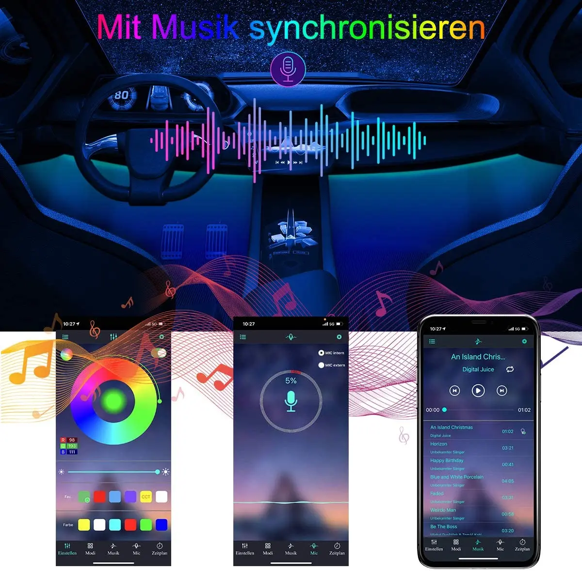 10 в 1 автомобильные атмосферные огни USB RGB светодиодные ленты с дистанционным управлением APP для авто интерьерная декоративная приборная панель неоновая лампа автомобильные аксессуары 12 В