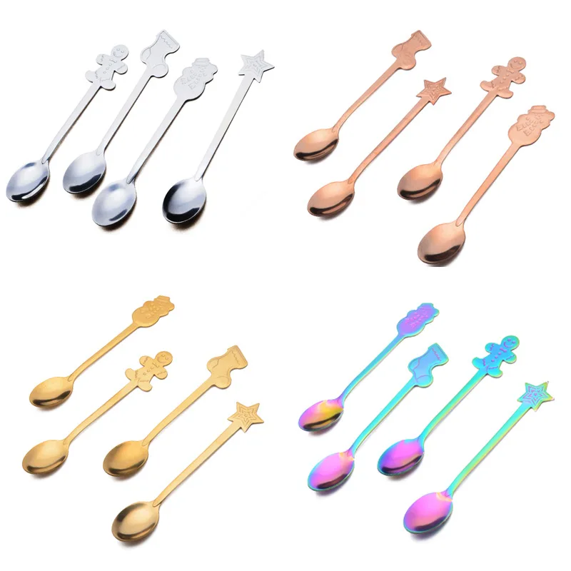 4 шт.компл. рождественские кофейные ложки из нержавеющей стали, дес...