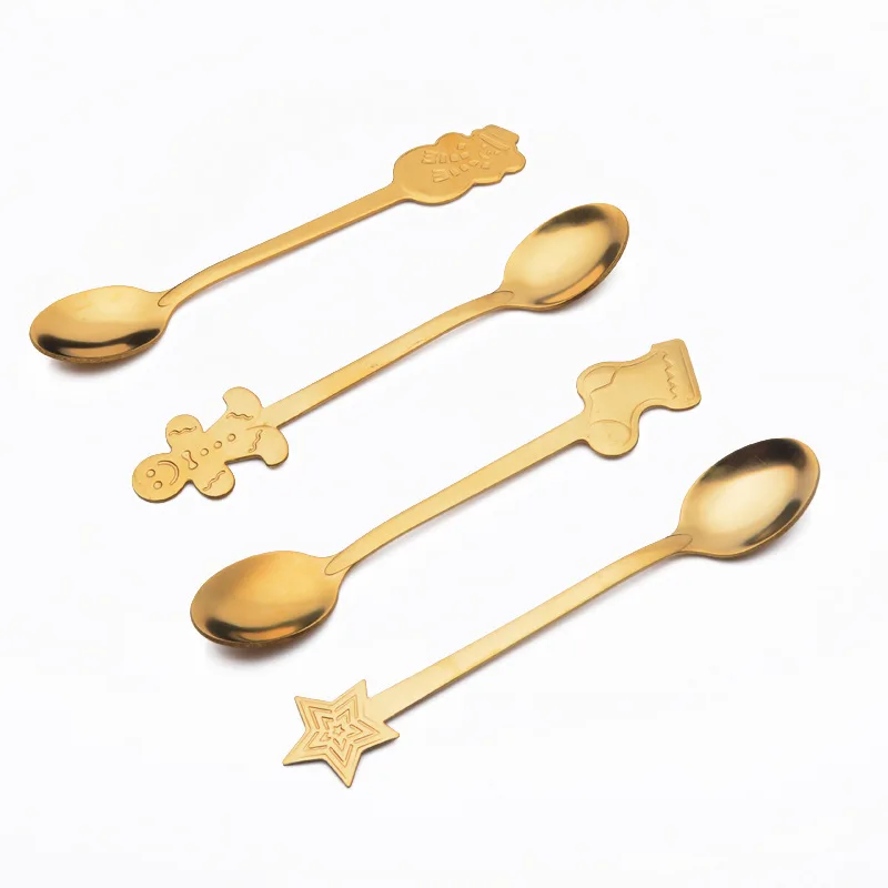 Рождественский набор ложек из нержавеющей стали, позолоченная Ложка...