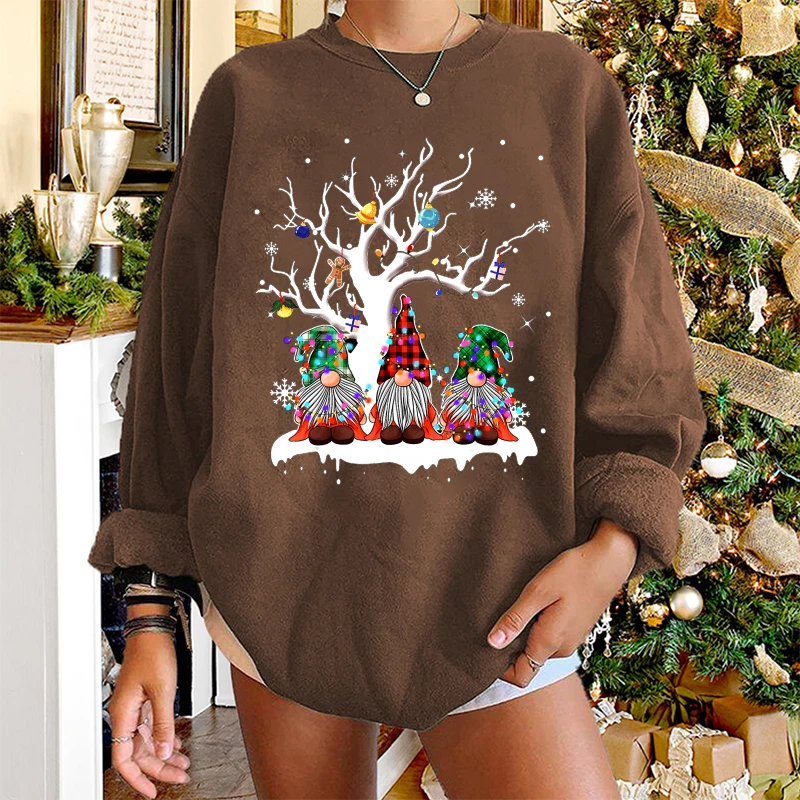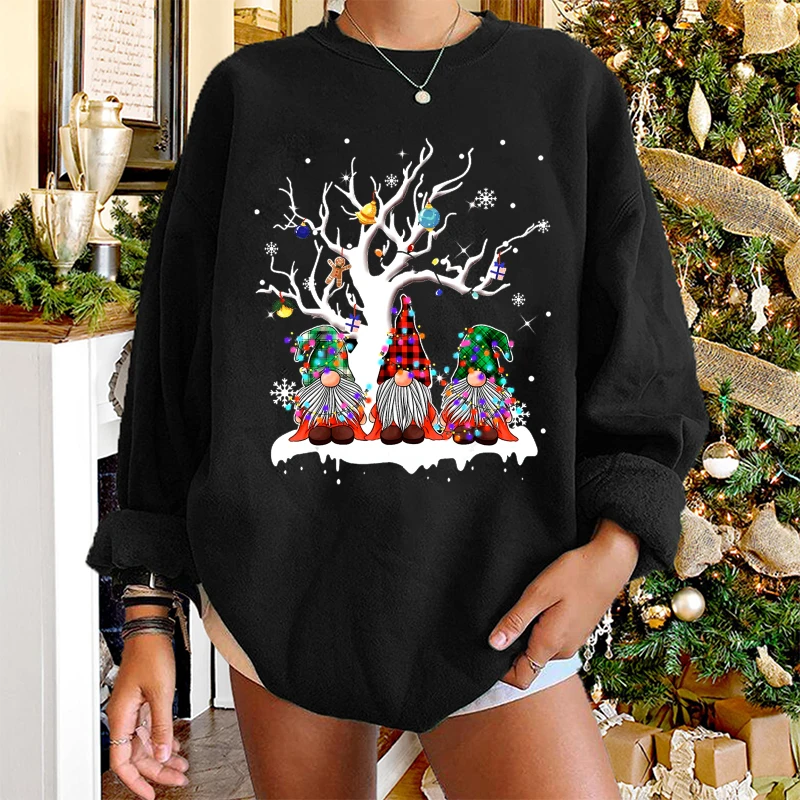 PatternCartoon Santa Gnome Print Funny Christmas Sweatshirts