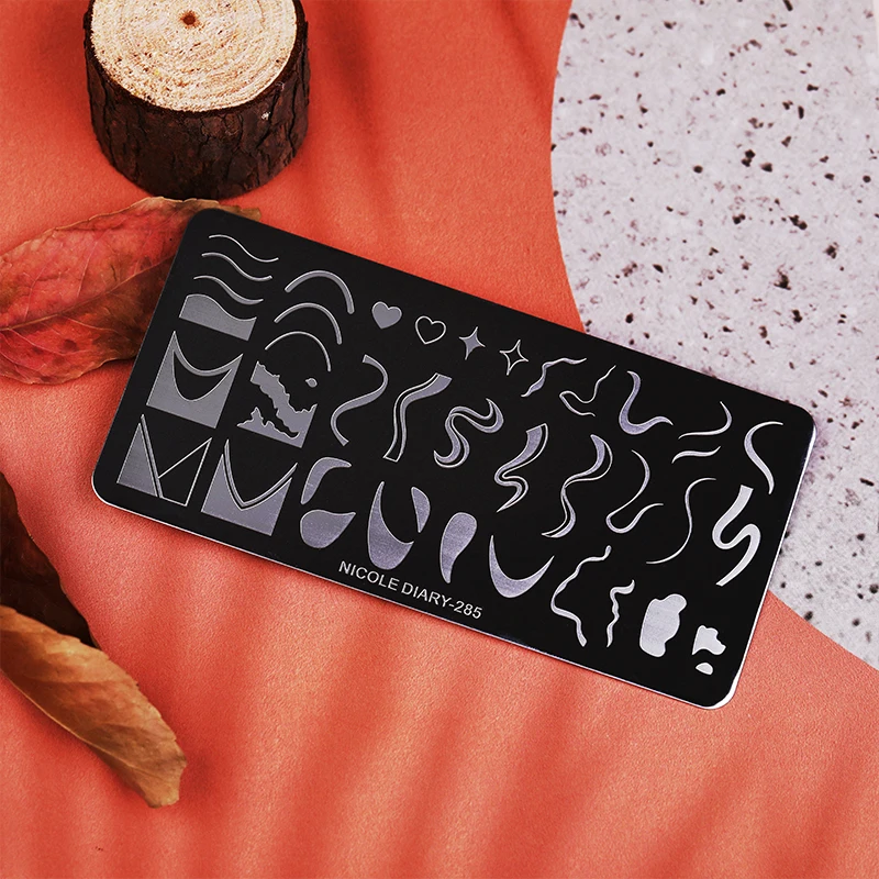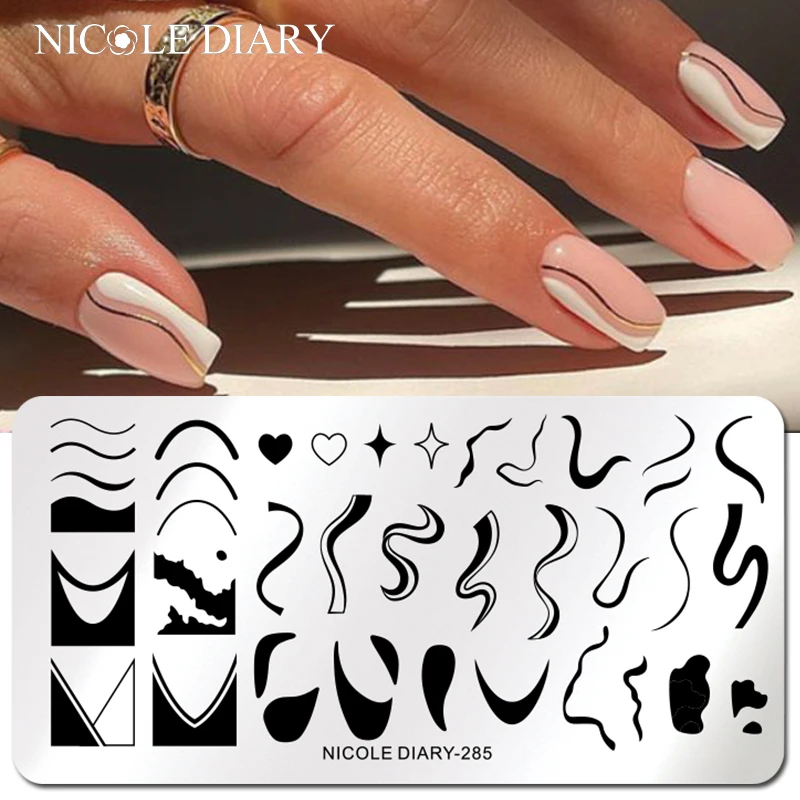 Трафареты NICOLE DIARY для стемпинга ногтей, рисунок с французскими линиями, в полоску, шаблоны для печати цветов, Листьев, женский