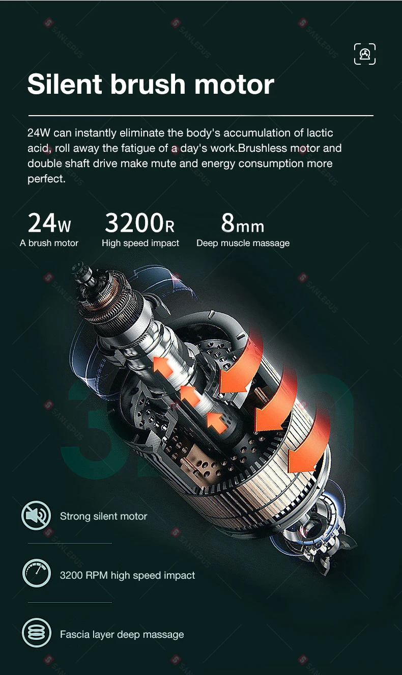Портативный Массажный пистолет SANLEPUS с ЖК-дисплеем, Электрический перкуссионный пистолет, массажер для тела, шеи, спины, глубоких тканей, расслабление мышц, фитнес