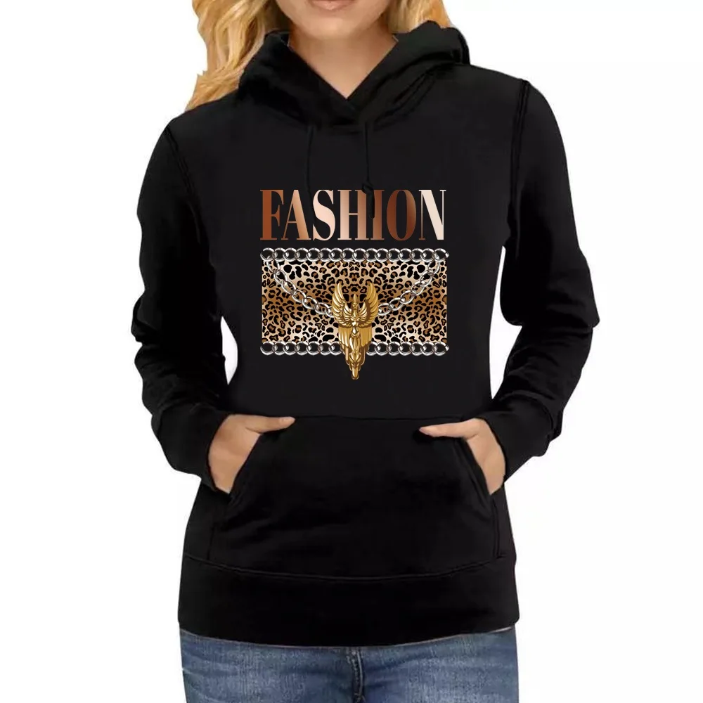 Женская уличная одежда, толстовки, свитшот, Осенний худи с длинным рукавом и капюшоном в стиле Харадзюку, Модный пуловер свободного покроя с леопардовым принтом