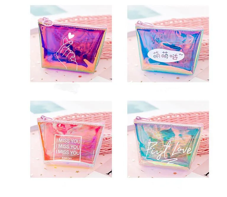 Кошелек для монет женский, маленький прозрачный бумажник из ПВХ с лазерной печатью, на молнии, с милым держателем для денег, ключей, наушников, Отделом для монет, сумочка