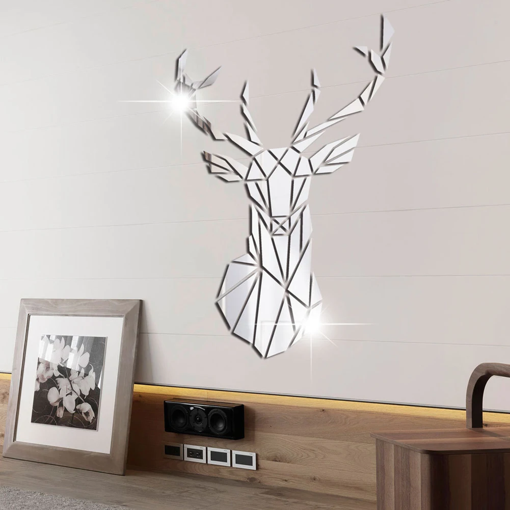 3D зеркальная Настенная Наклейка с головой оленя, домашнее украшение, акриловая Зеркальная Наклейка, настенная Съемная художественная наклейка, Настенная бумага в скандинавском стиле для гостиной