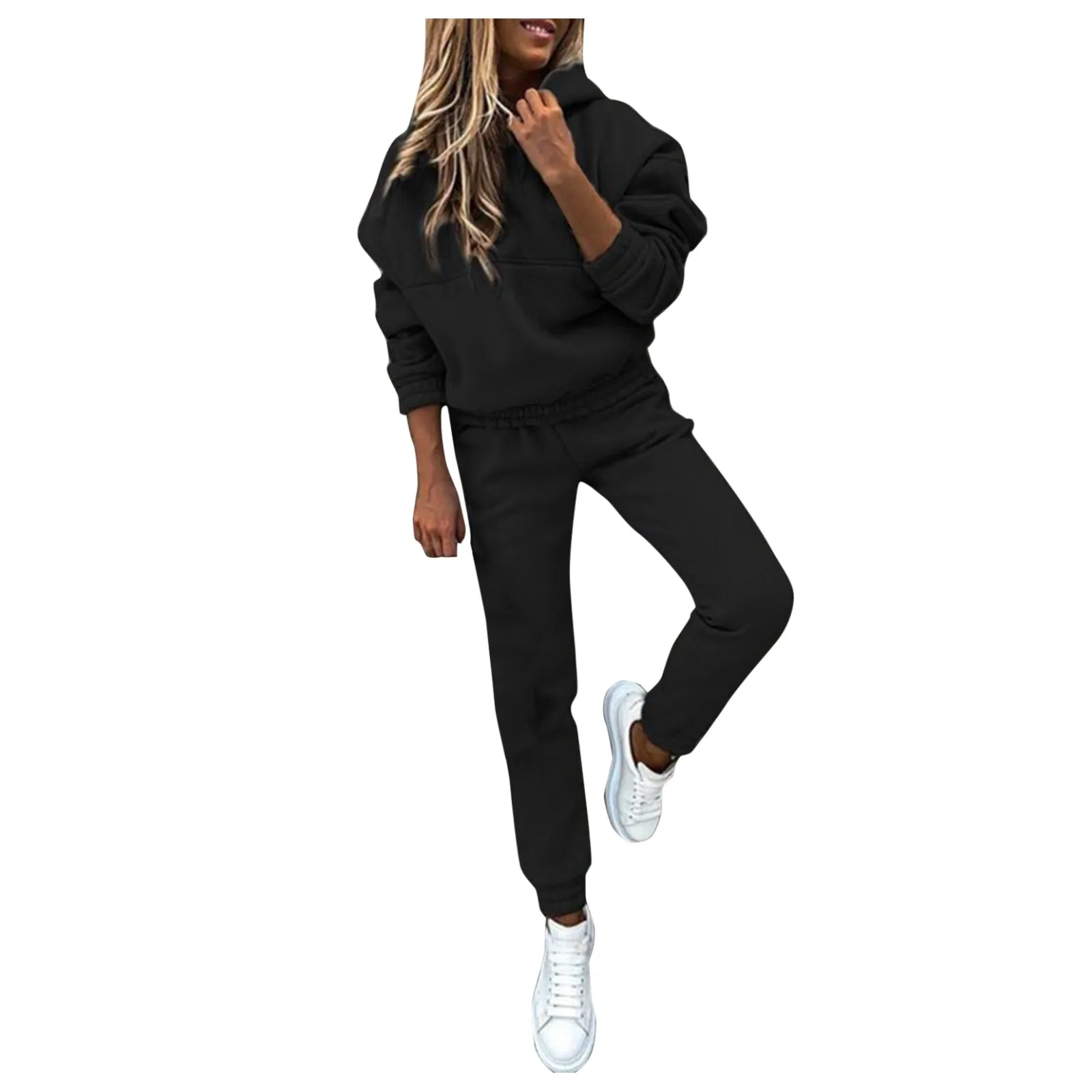 Теплый спортивный костюм из 2 предметов, осенне-зимняя толстовка с капюшоном и длинные брюки, спортивный костюм, женский спортивный костюм для бега, одежда для тренировок, спортивная одежда