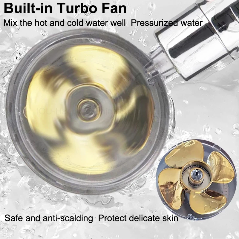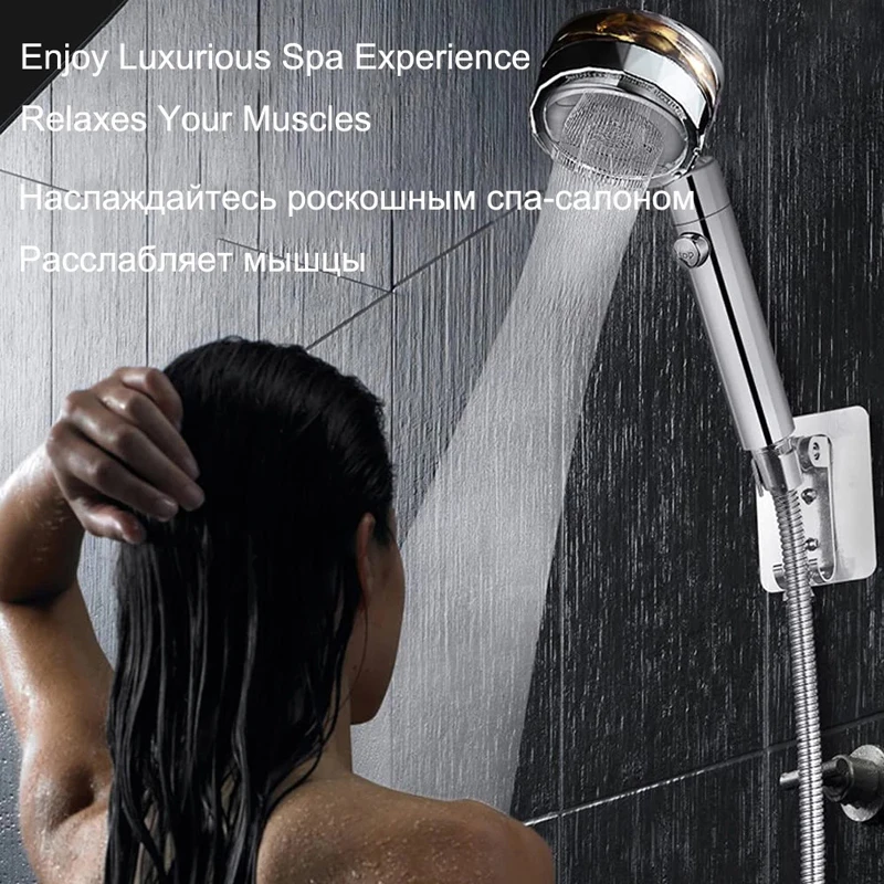 【Дизайн высокого давления 】насадка для душа обеспечивает поток воды создает поток под давлением через вращающееся колесо, увеличивая скорость потока воды, тем самым увеличивая давление воды. Применяется для низкого давления воды.
