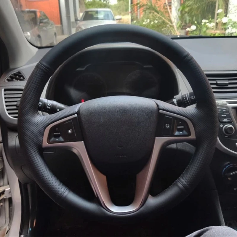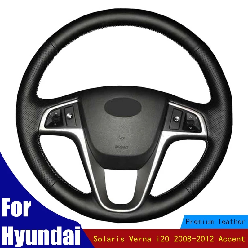 Чехол рулевого колеса автомобиля черная натуральная кожа для Hyunda...