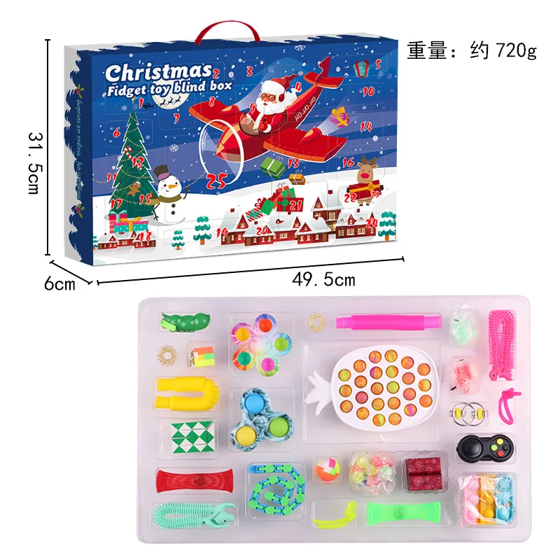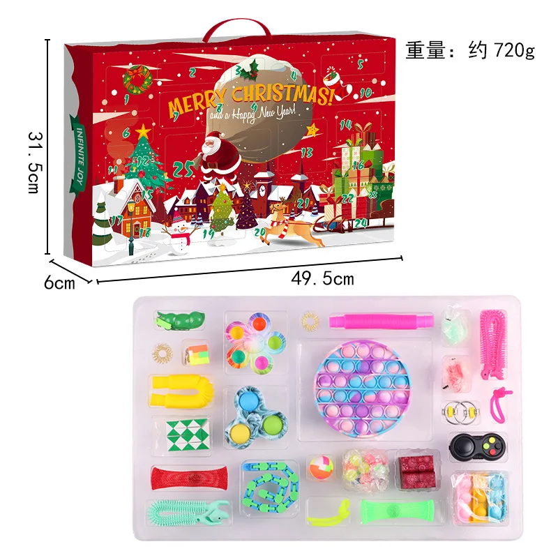 Упаковка игрушек календарь для детей и взрослых, календарь на Рождество, 24 дня, обратный отсчет, подарок, игрушка с пузырьками