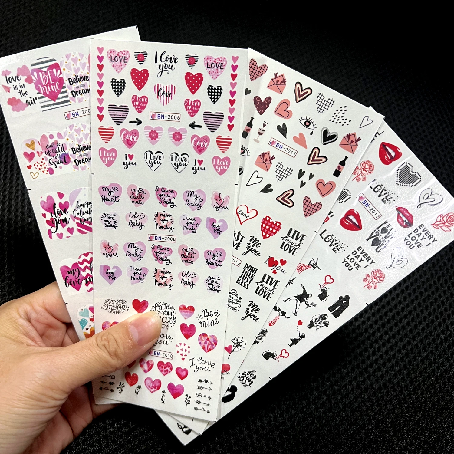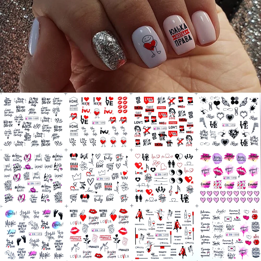 Наклейки для ногтей с надписью Love на День святого Валентина, 12 дизайнов, Переводные слайдеры, 2022, Рождество, зима, новый год, аксессуары и инструменты для ногтей