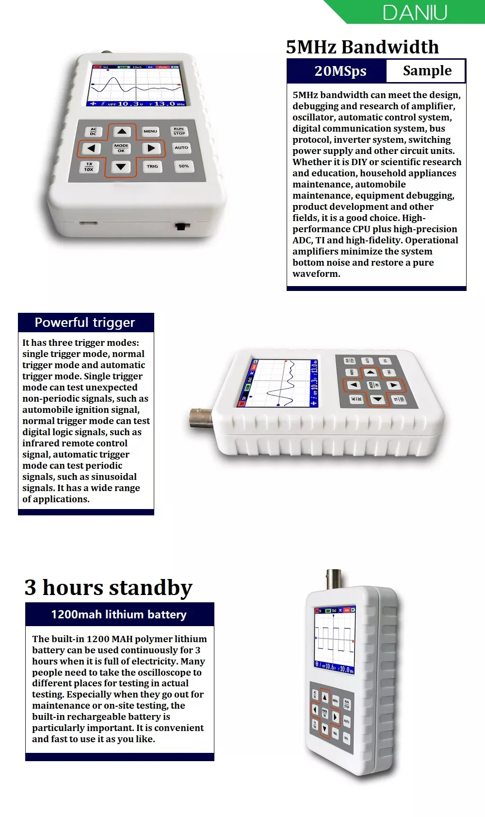 FeatureDigital Oscilloscope Handheld Oscilloscope 5M Bandwidth
