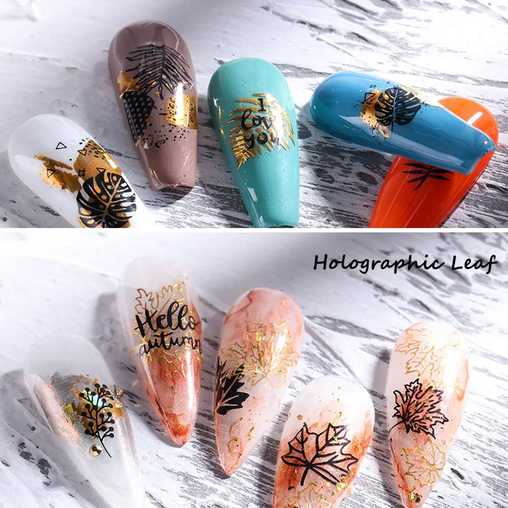 Голографические наклейки для ногтей в виде листьев и клена, 3D лазе...