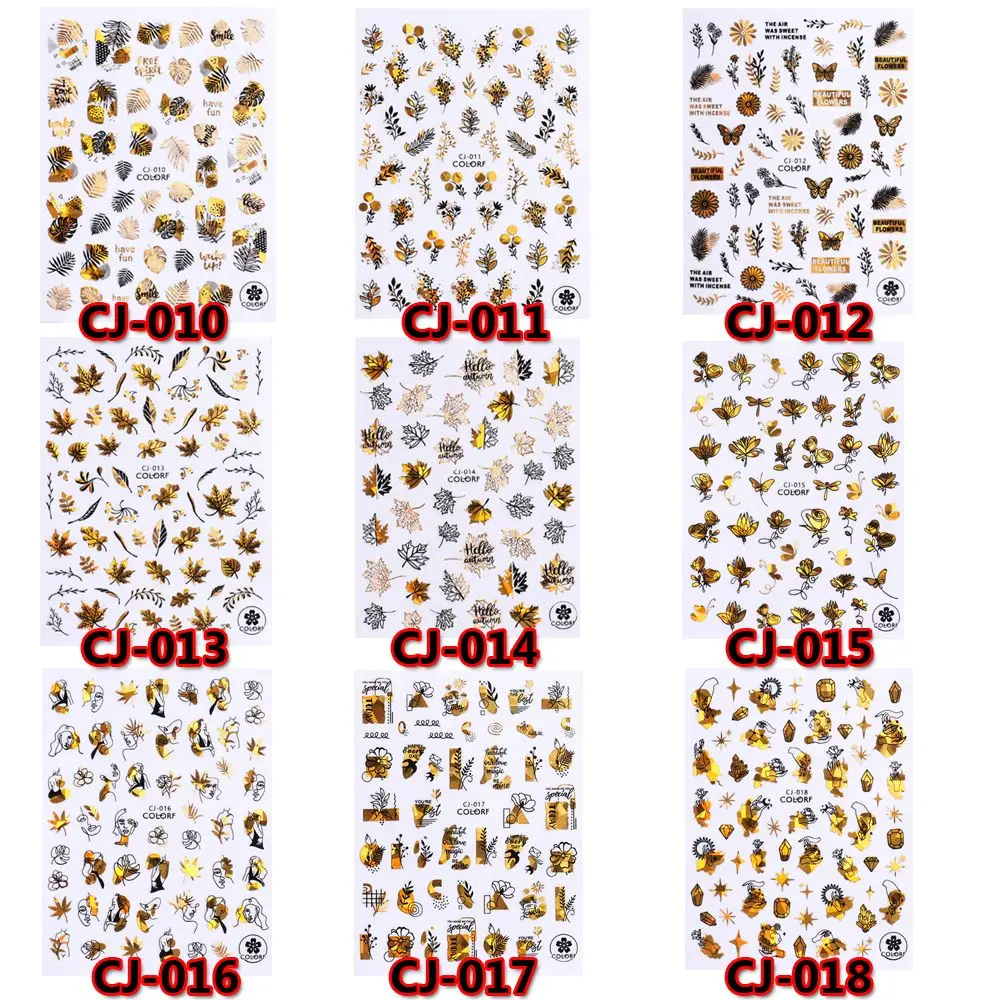Модные 3D наклейки для ногтей в виде кленовых листьев, 1 шт., Золот...
