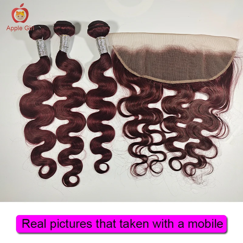 Пряди человеческих волос 99J с фронтальным размером 13x 4, бразильские прямые волосы на сетке с 3 или 4 пучками, волосы Remy Applegirl