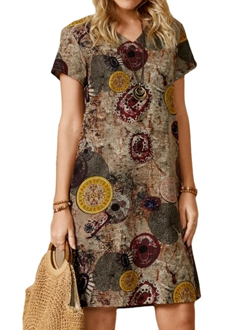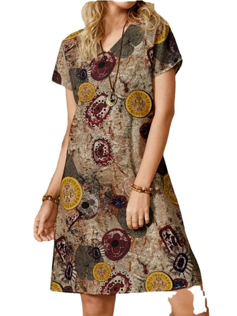 Платье женское хлопково-льняное с V-образным вырезом и коротким рук...