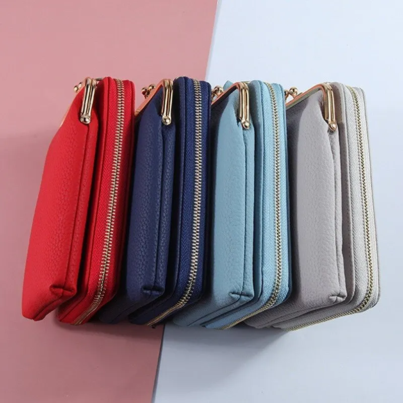 Новинка 2021, женские кошельки, однотонная кожаная сумка через плеч...