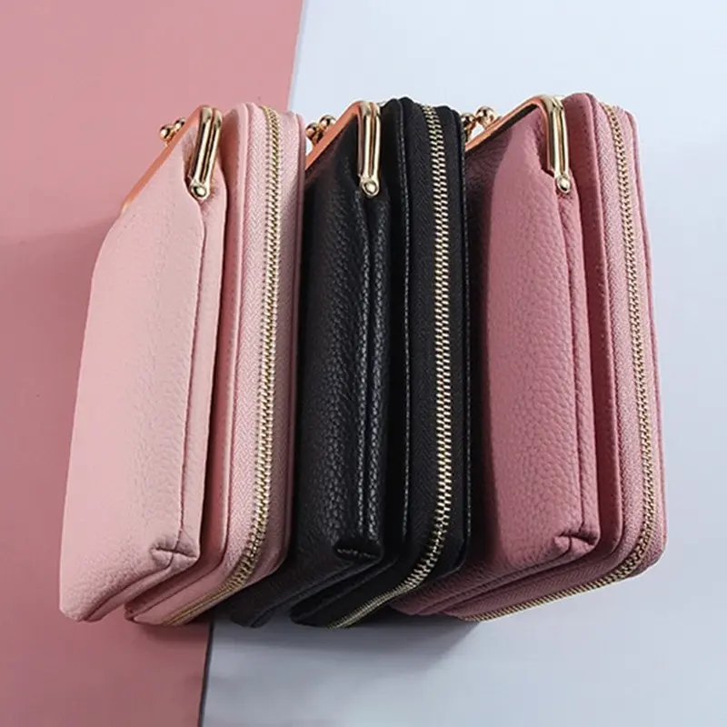 Новые модные женские кошельки, однотонная сумка через плечо из иску...