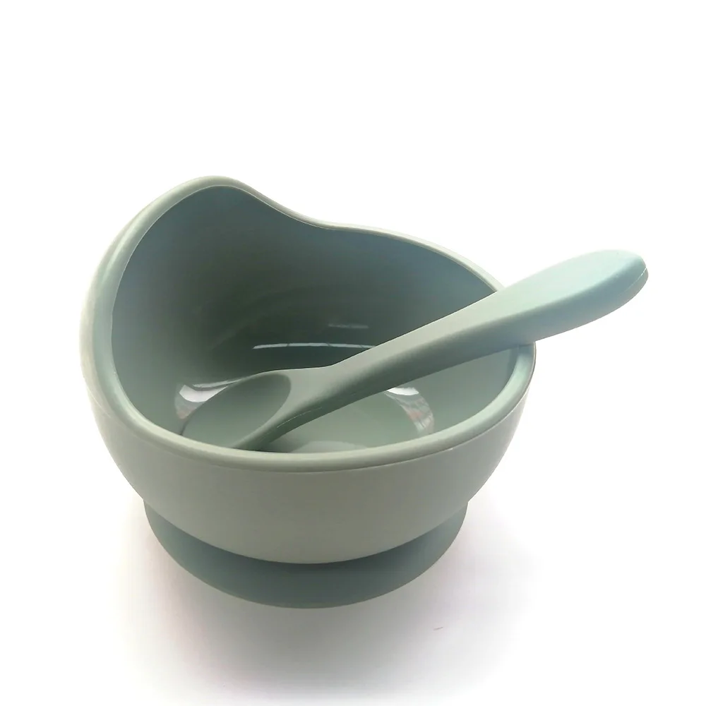 Силиконовая миска для кормления ребенка, 1 комплект, посуда для детей, водонепроницаемая миска на присоске с ложкой, детская посуда, посуда, Детские принадлежности