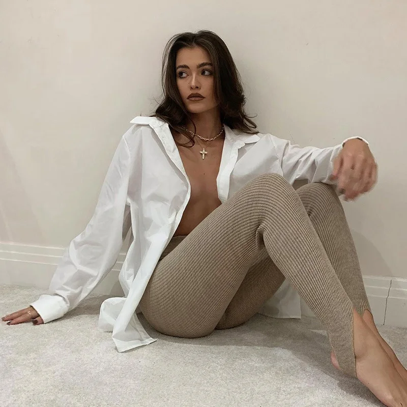 Осенние женские пикантные облегающие спортивные брюки, модные однотонные трикотажные леггинсы в рубчик для женщин, повседневные брюки с высокой талией, домашняя одежда