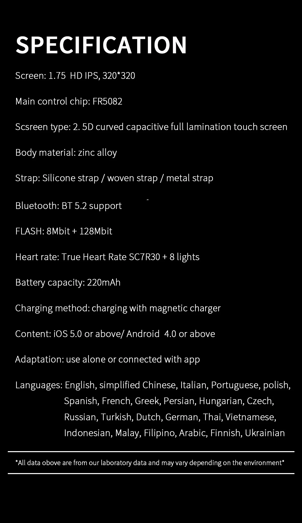 * Все измерения умных часов не являются профессиональными медицинскими инструментами или инструментами обнаружения движения. Результаты измерений приведены только для справки и не могут рассматриваться как медицинское оборудование. Это нормальное отклонение. Пользователь должен рассматривать данные объективно. Если вам нужны более точные данные, мы рекомендуем вам при необходимости приобрести профессиональные медицинские устройства.