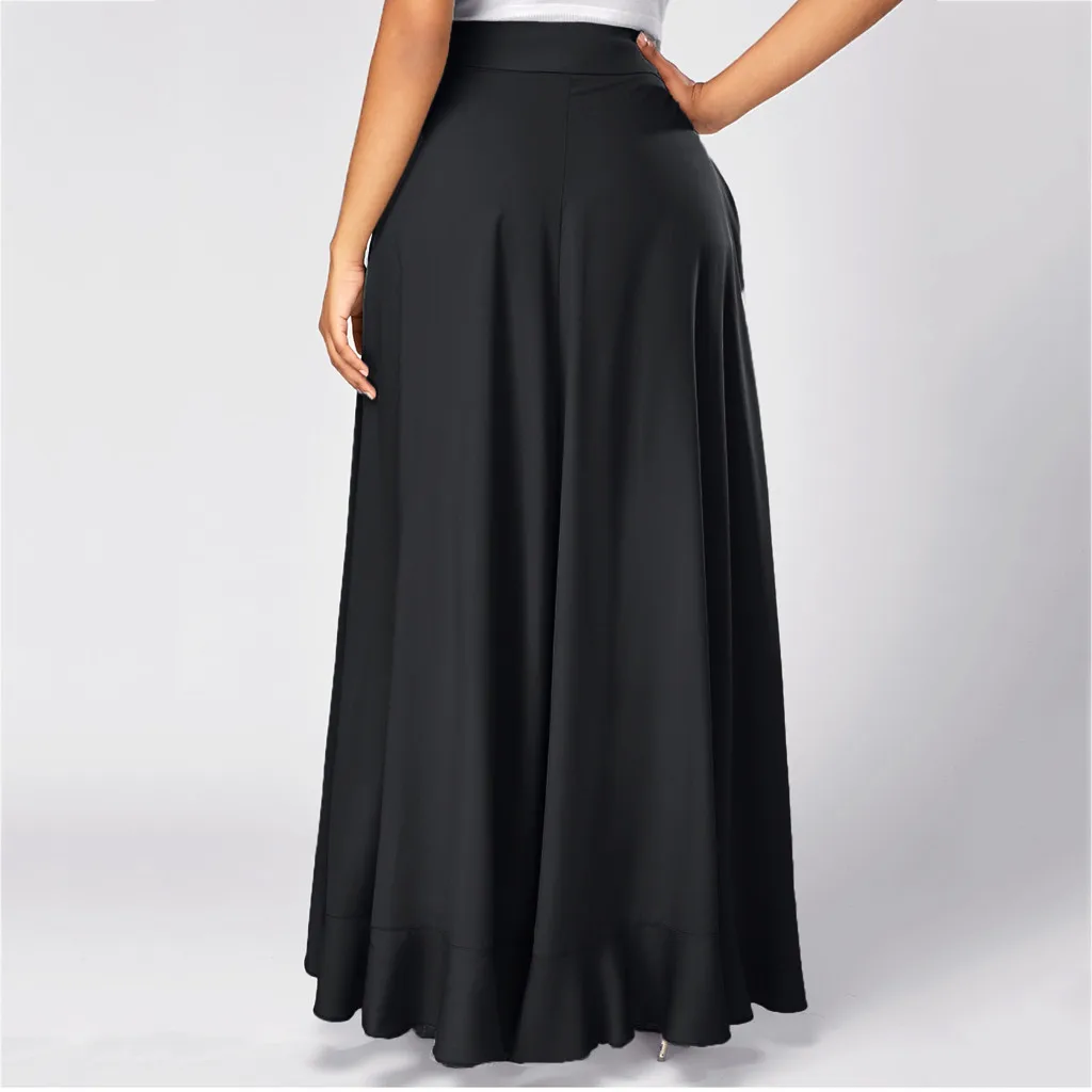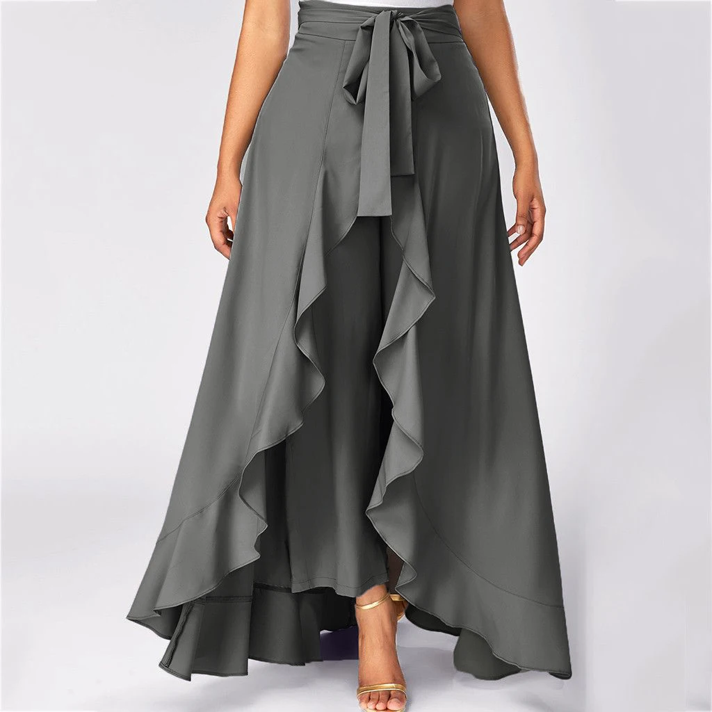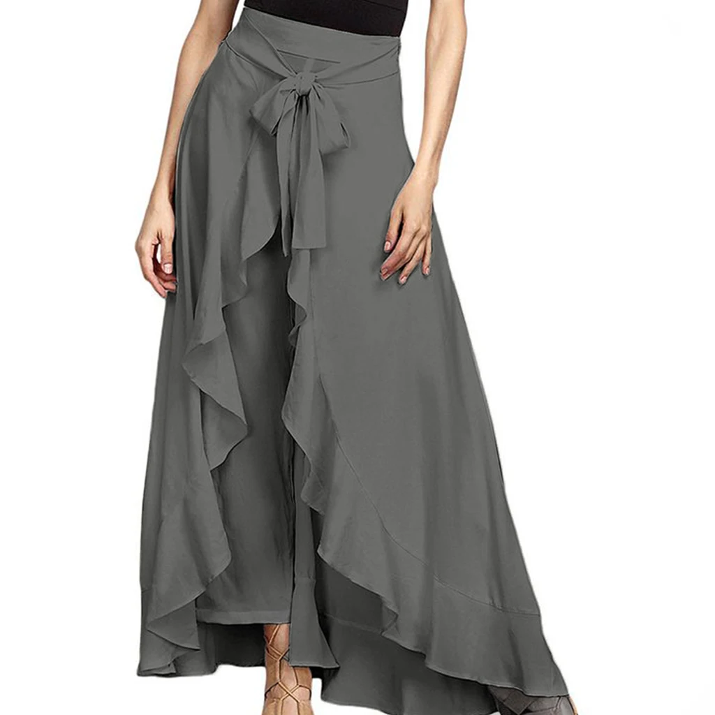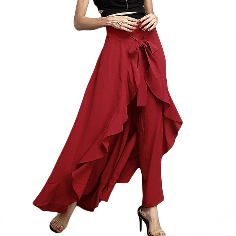 Брюки-Палаццо Женские повседневные с оборками, элегантные Асимметричные свободные пляжные штаны с завышенной талией для танцев, пляжная юбка