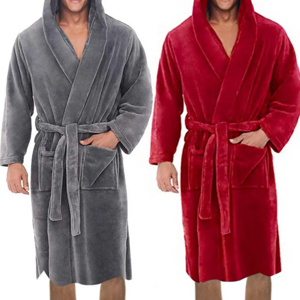 Мужская одежда для сна, зимний удлиненный плюшевый однотонный флане...