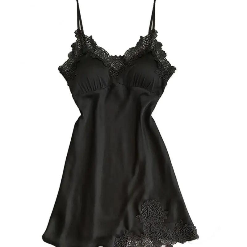 NameWomen Lingerie V Neck Nightwear Sexy Satin Sleepwear Mini Teddy Lace C