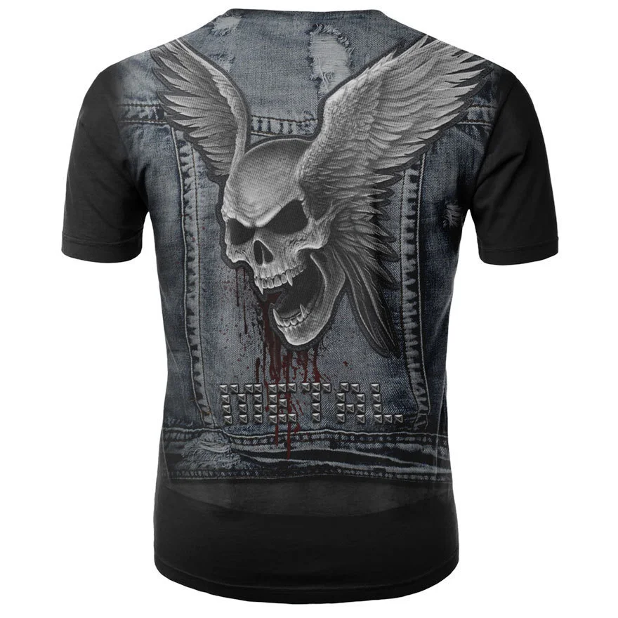 Мужская футболка с рисунком черепа, зеленая футболка, кожаная куртк...