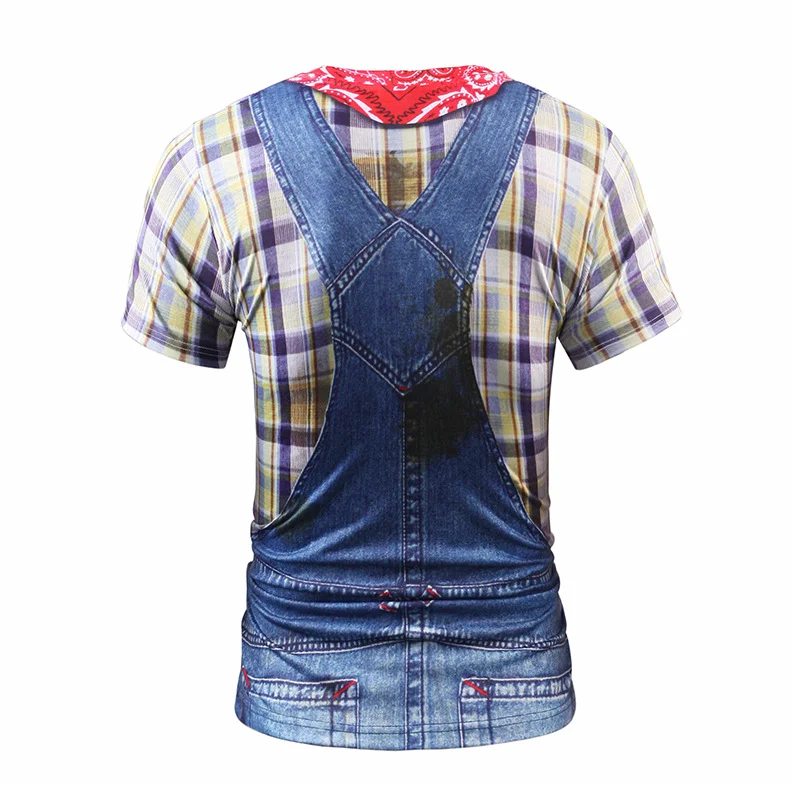 Мужская футболка с коротким рукавом, искусственный костюм, уличная одежда, 3D жилет, модный смешной фальшивый костюм, искусственный костюм, летняя новая модель 2022