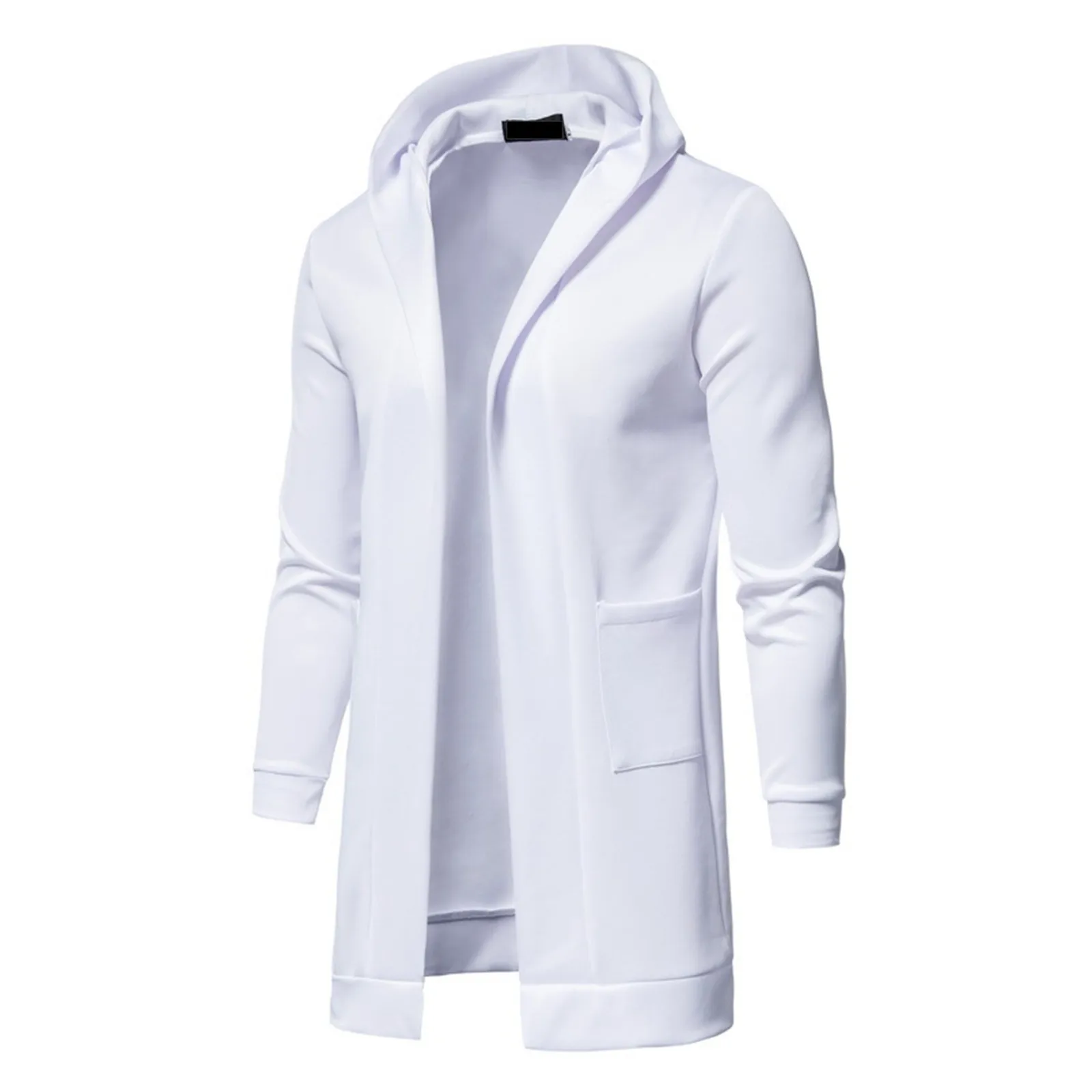 Мужской модный трендовый кардиган средней длины, куртка, однотонная ветровка с длинным рукавом и капюшоном, пальто и куртки на осень и зиму