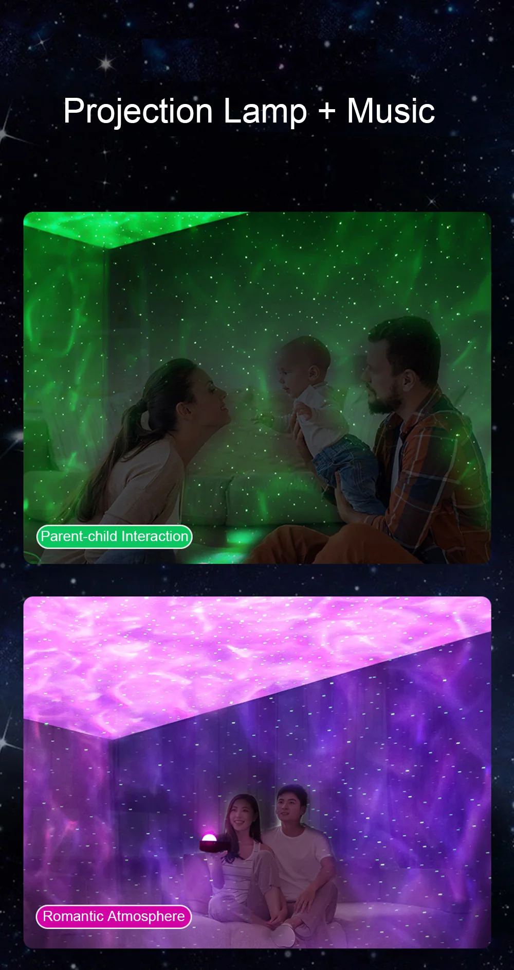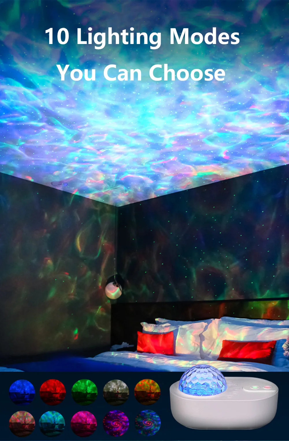 Новинка, звездное небо, океан, проекционная лампа с USB, светодиодсветодиодный, вращающаяся музыка, вечевечерние, узор воды, атмосферный светильник, Подарочный светильник