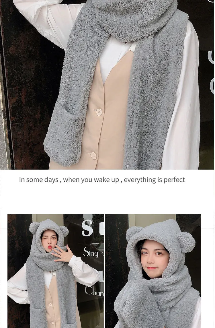 Новинка 2021, стильная шапка из кашемира ягненка, женский зимний Универсальный шарф с капюшоном, перчатки, теплая и непромокаемая хлопковая шапка для защиты ушей