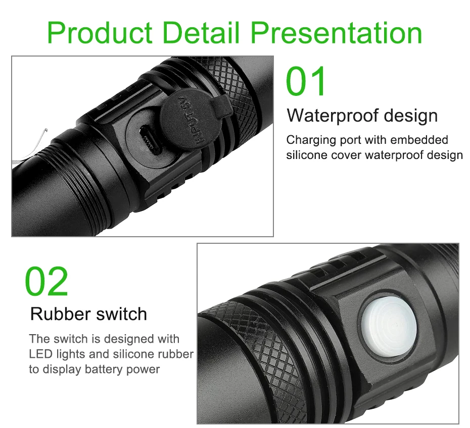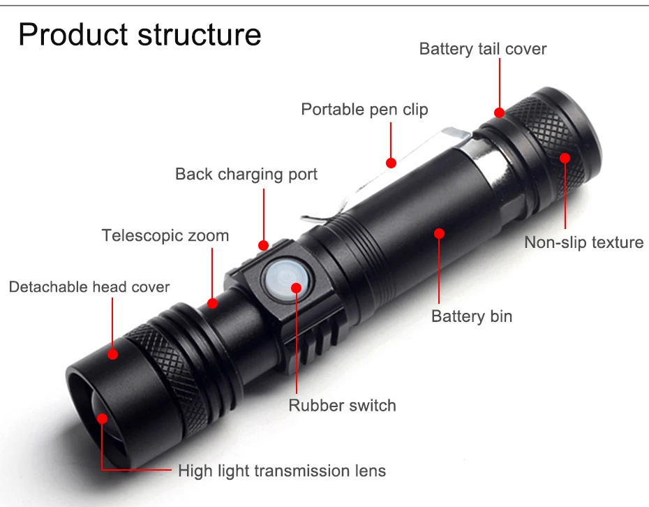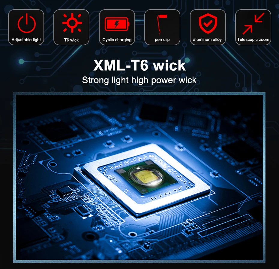 Водонепроницаемый Масштабируемые Xml T6 Перезаряжаемые фонарик USB ...