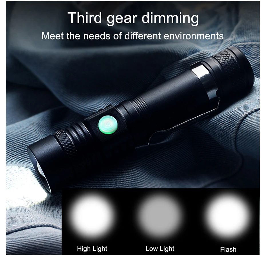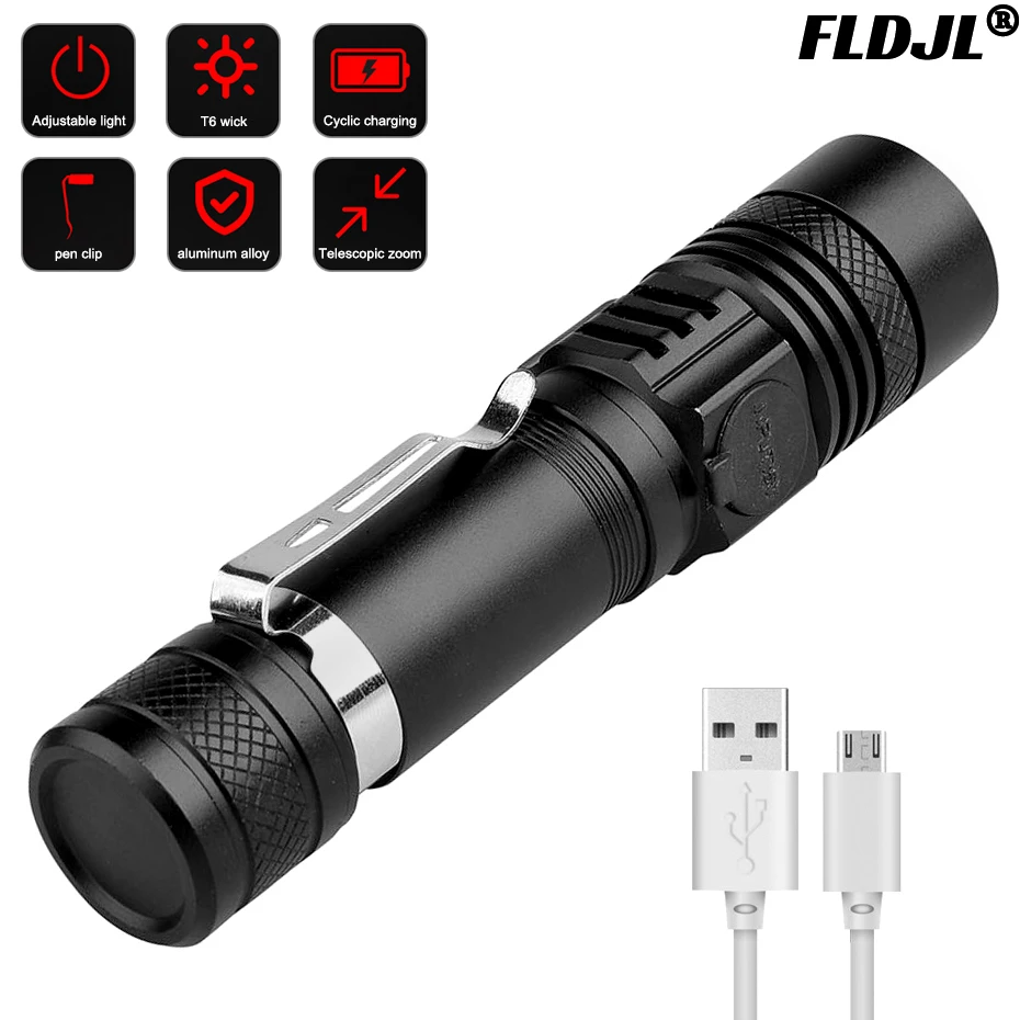 Мощсветильник светодиодный фонарик с зарядкой от USB, масштабируемый фонарик с аккумулятором 18650, светодиодный ручной фонарик T6, фонарик для кемпинга, пешего туризма, работы