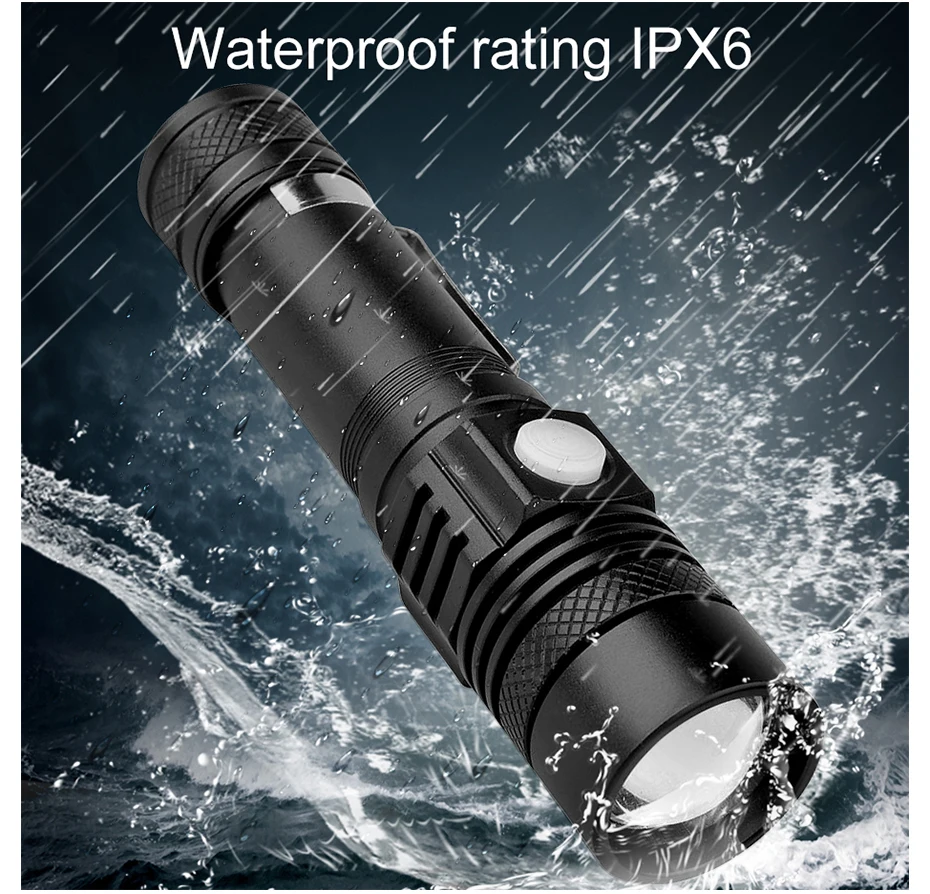 IPX6 Водонепроницаемый фонарик 18650 XML T6, USB Перезаряжаемый фон...