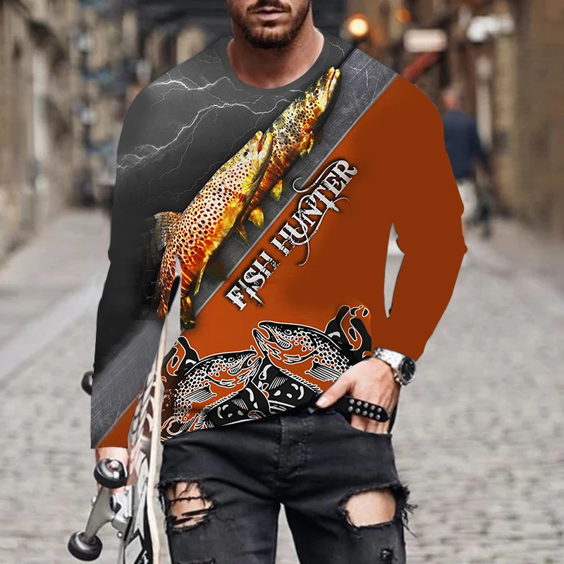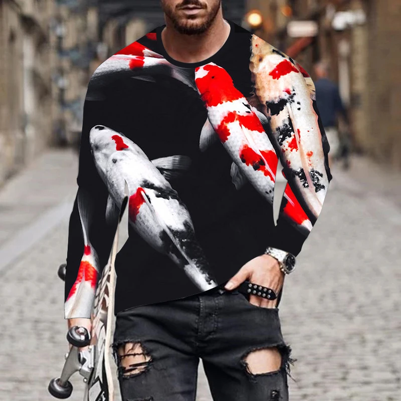 Европейская и американская популярная мужская Спортивная футболка для отдыха с 3D Цифровым принтом уличная трендовая футболка с 3D принтом и длинным рукавом