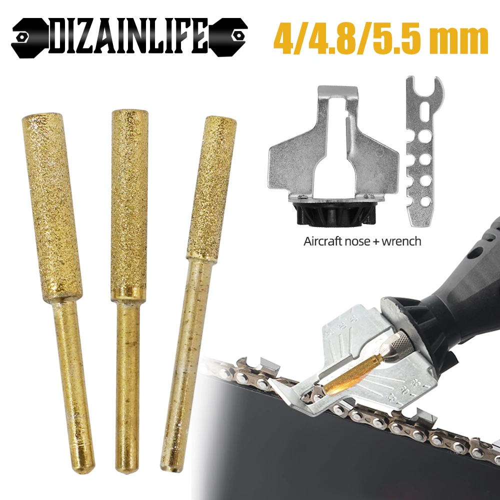 5 шт. × 4 мм + 5 шт. x 4,8 мм + 5 шт. 5,5 мм алмаз для заточки цепных пил + крепление (компания предоставляет самое лучшее углом заточки) + ключ, дюймовый стандарт