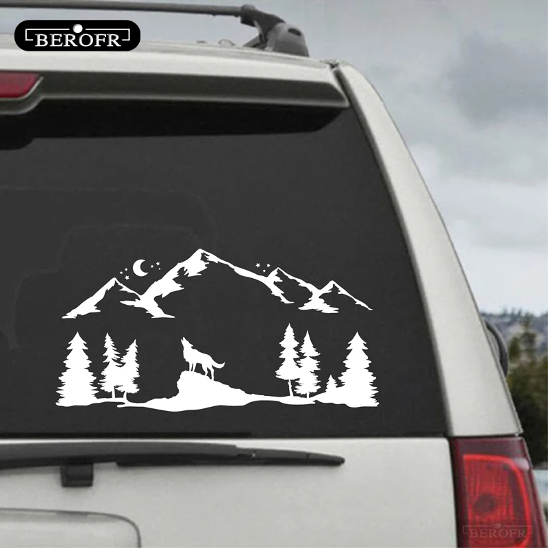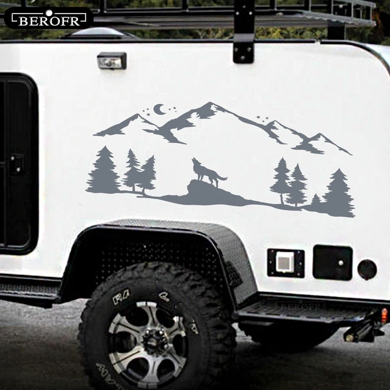 Автомобильные виниловые наклейки, наклейки для внедорожников, домов на колесах, жилых людей, воющего волка, украшения, горы, лес, животные, лунный свет