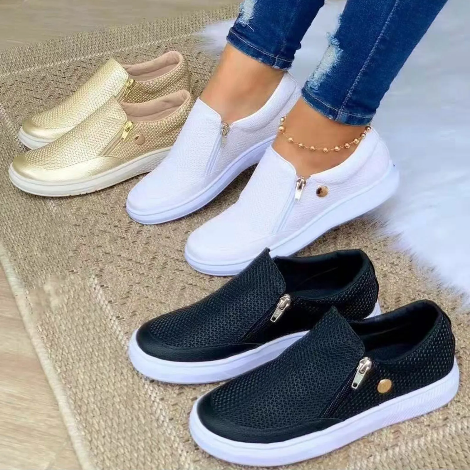 Женские кроссовки без шнуровки, модная повседневная обувь для бега,...