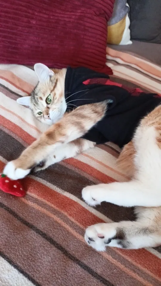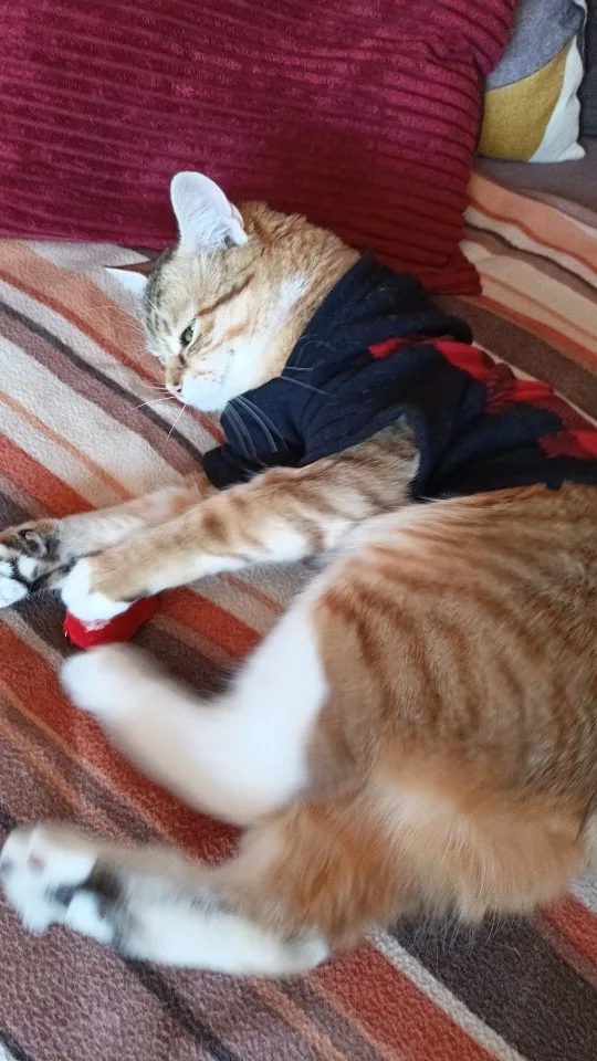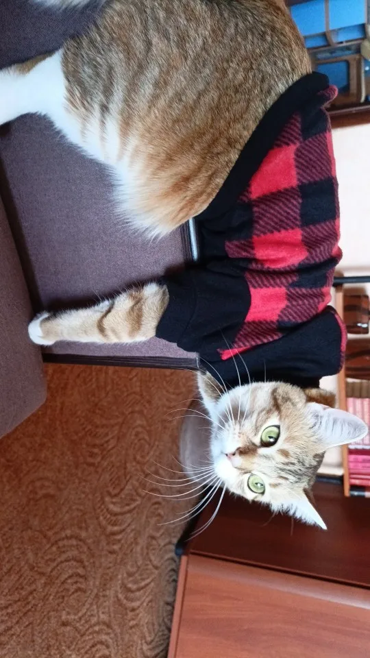Не скажу, что кошка была прям уж довольна новой одежкой, но тем не менее ей все подошло. :D