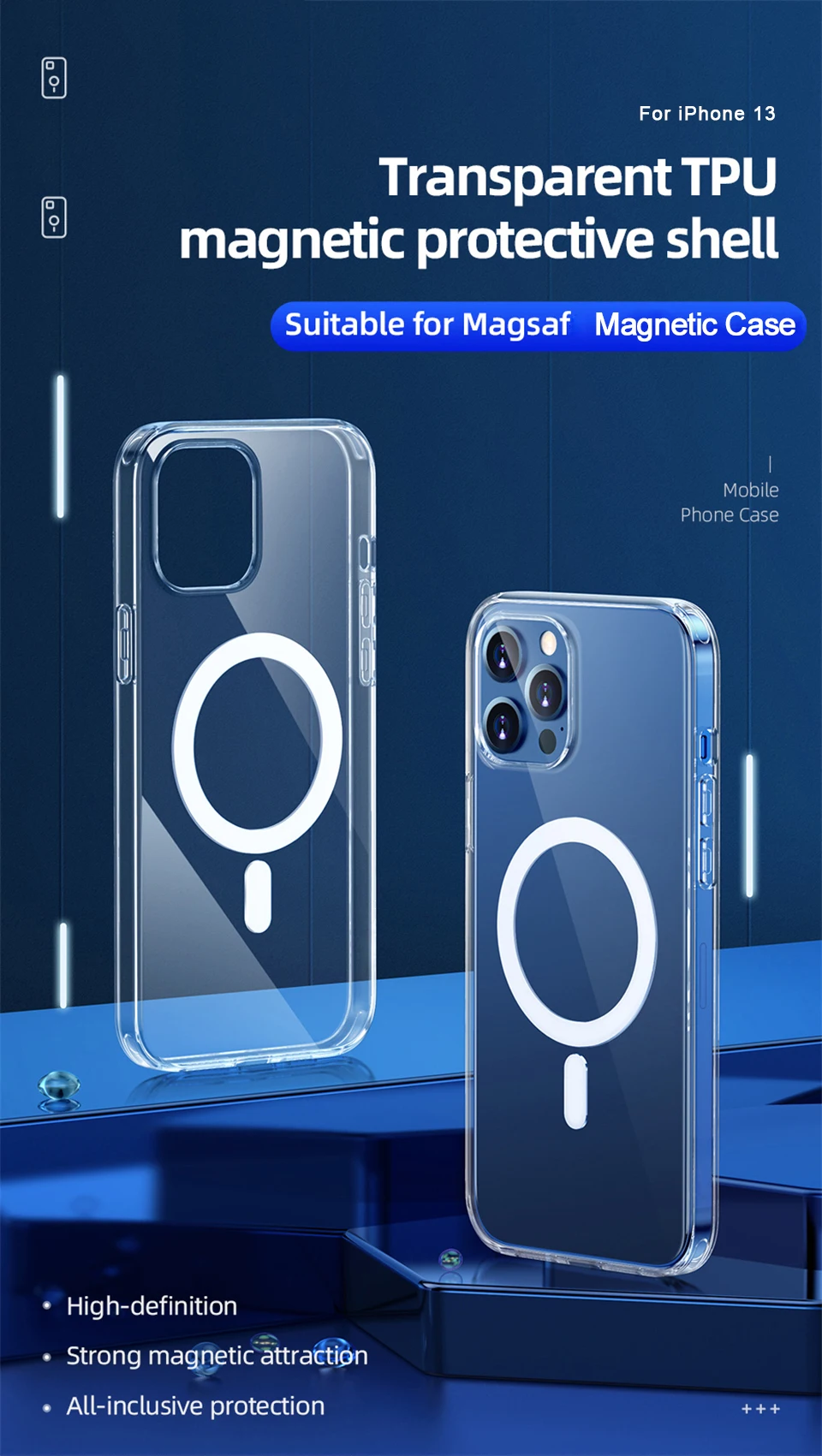 Магнитный прозрачный защитный чехол для iPhone 13, 12 Pro, 11 Max