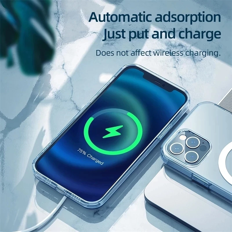 Магнитный Прозрачный чехол для телефона Magsafe с беспроводной заря...