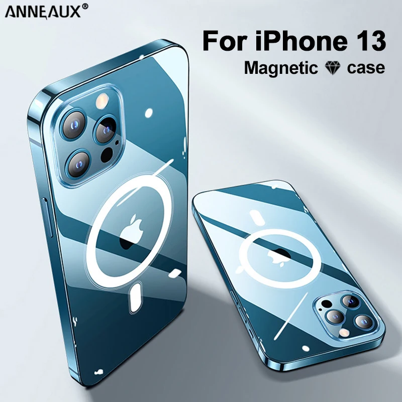 Прозрачный чехол для iPhone 13 12 11 Pro Xs Max, гальванический Магнитный чехол Xr X 7 8 Plus SE 13 12 mini с беспроводной зарядкой