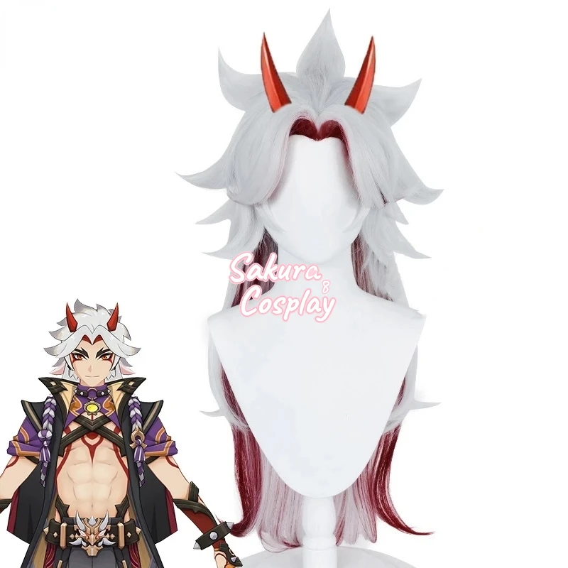 Длинный волнистый костюм для косплея аратаки Итто из термостойких синтетических волос Game Genshin Impact, карнавал на Хэллоуин + шапочка для парика