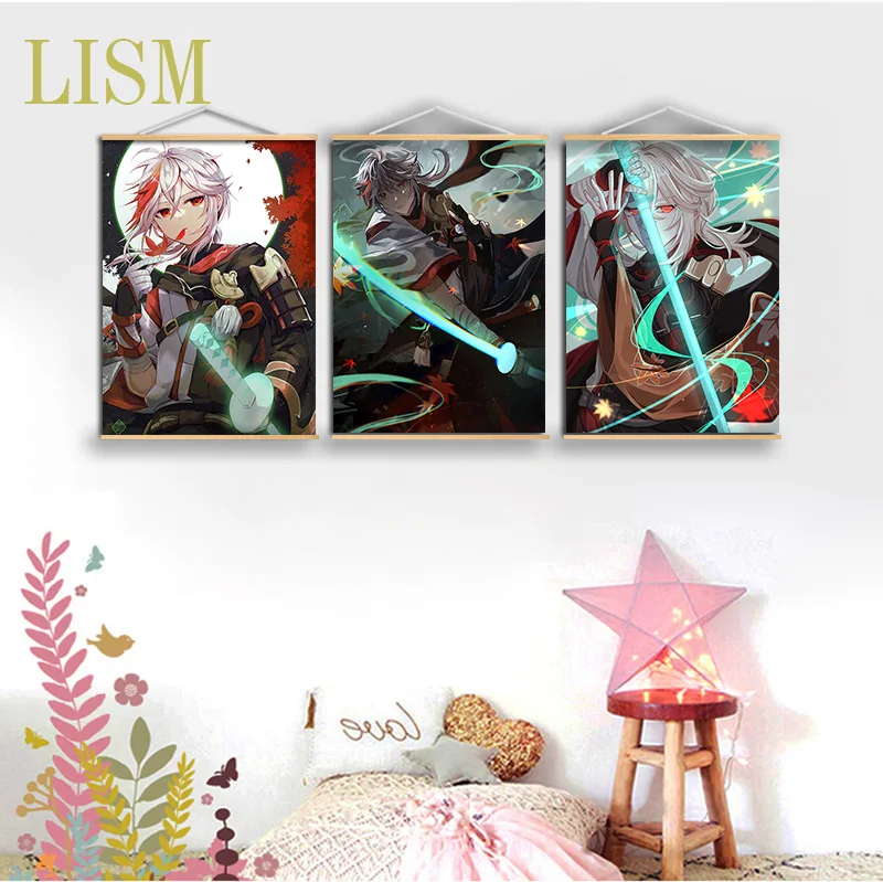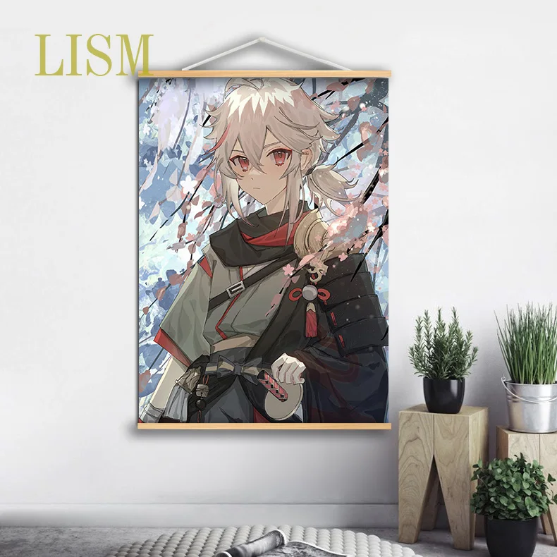 Игра геншин ударт каэдехара казуха Аниме Манга настенный постер из массива дерева подвесной свиток с картиной на холсте