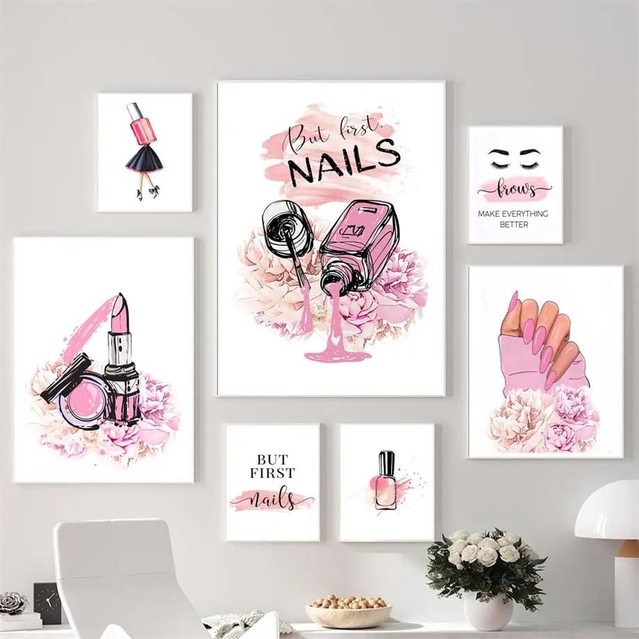 Ресницы, лак для ногтей, салонная помада, настенное искусство, холст, живопись, скандинавские плакаты и принты, настенные картины для гостиной, модный Декор