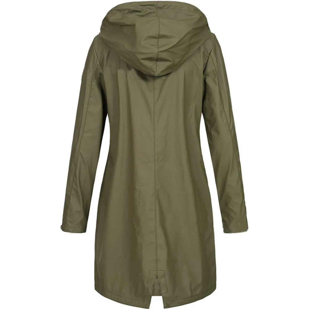 Осенняя уличная Водонепроницаемая дождевик средней длины размера плюс с капюшоном однотонное ветрозащитное пальто с карманами на завязках приталенный черный Тренч
