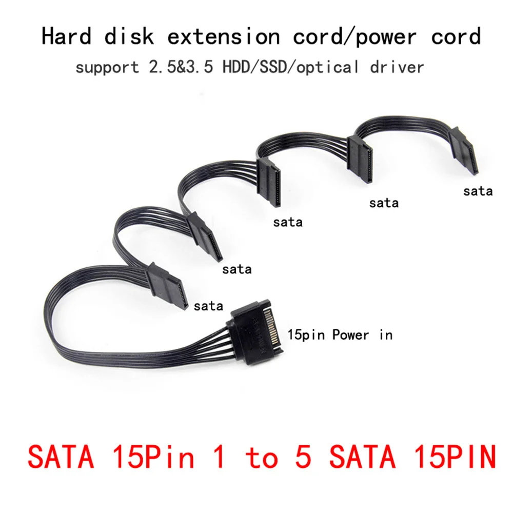 Разветвитель блока питания для жесткого диска, 4 контакта IDE, от 1 до 5 SATA, 15 контактов, кабель для ПК сделай сам, питание от 4 до 15 контактов для майнинга BTC, ETH
