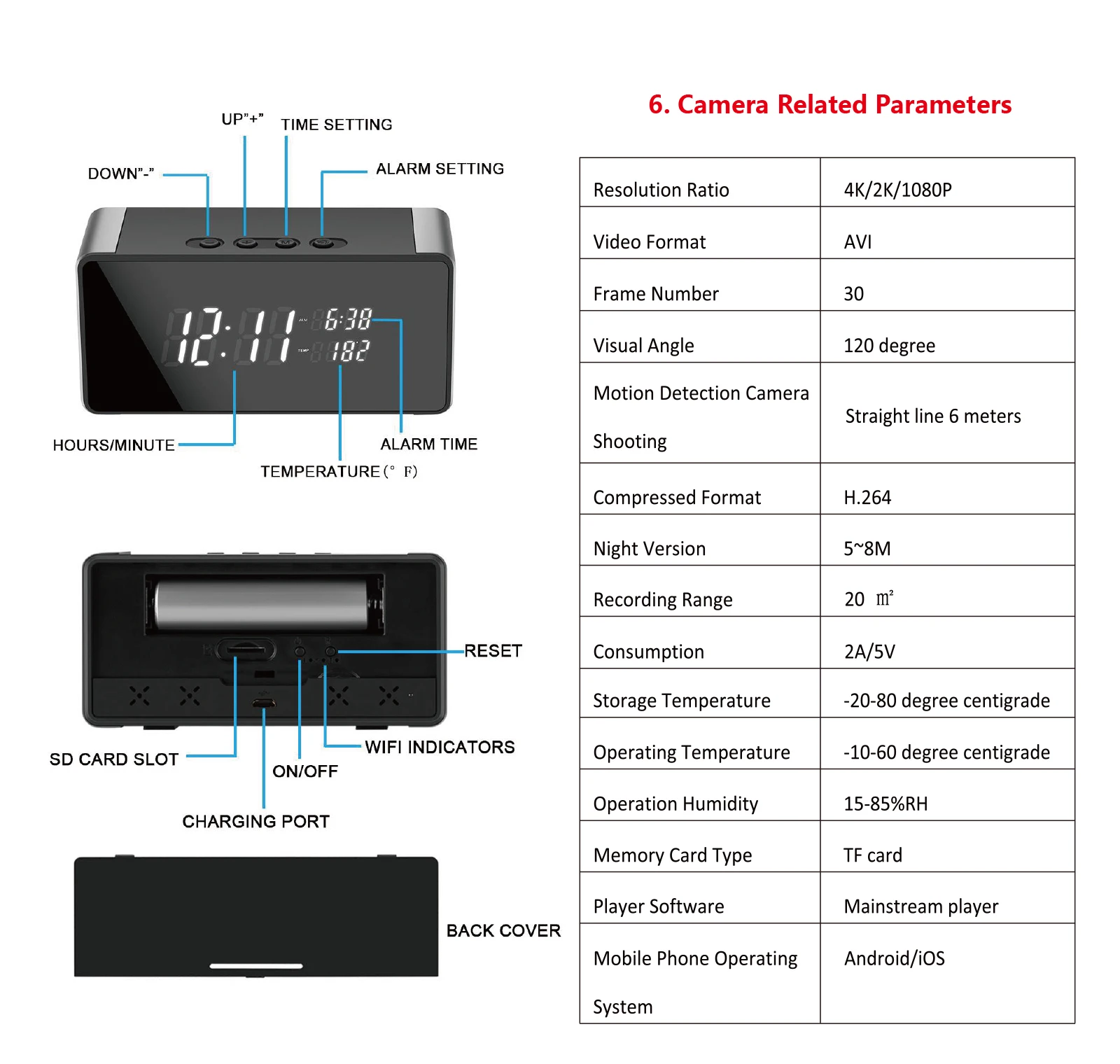 Характеристика:* Поддержка iPhone/Android смартфон Wi-Fi Прямой мониторинг* Поддержка смартфона iPhone/Android для мониторинга непосредственно через Интернет* Поддержка 24-часовой непрерывный удаленному мониторингу, с обнаружения движения режим и любых погодных условиях и режим записи варианты.* Формат сжатия видео H.264, который имеет более высокую скорость передачи и сохраняет память.* Простая и быстрая настройка в удаленном мониторинге.* Ультра-прозрачные линзы делают эффект более четким.* Изысканный и тщательный дизайн* Поддержка хранения большой емкости, максимальная поддержка 128 г. (За исключением карты памяти)* Мощные функции, такие как фотография и запись, фотографирование и обнаружение движения.* Внешний дизайн более практичный и удобный, и информация безопасна.* Функция обнаружения движения не упустит прекрасный момент.* Поддержка телефонов iPhone IOS, Android.* Приложение: Camama* Поддержка P2P. Просмотр в любое время и в любом месте* 5 в источник питания с батареей 2000 мАч