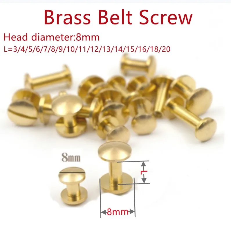 Диаметр головки 8 мм полукруглая твердая латунь, винты Chicago, заклепки-гвоздики для фотоальбома, кожаный ремень, винт-бумажник
